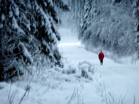 Heavy clouds are mounting, and by afternoon the snow is here. At first, a few single flakes, but soon it is a full-scale snowstorm. When we raise the shades in the morning, the landscape has been transformed; hills and forests are covered by thick snow so intensely white that it almost blinds us. By the end of the month our faithful friend, Sven-Erik with his tractor have come to clear the snow at least three times so we could get out. We spend Christmas peacefully by a flaming fire, read and listen to music. The darkness is like a black wall outside frosty windows. Midwinter!