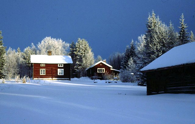 We land at Arlanda on a misty morning after an overnight flight from Chicago. At the last minute, we catch an early train to Falun the closest town to Vintjärn. Sven-Erik, my old classmate has cleared the road to our house, which has stood deserted for months. There is more snow than we have seen for many years; the snowdrifts are nearly as tall as man. We wade waist-deep to make our way to outhouse and woodshed. Temperature is just blow zero C, and as soon as we get the fires going the house feels warm and cozy. We relax with a cup of coffee by the crackling fire after a “day” that lasted for more than two days and nights.
