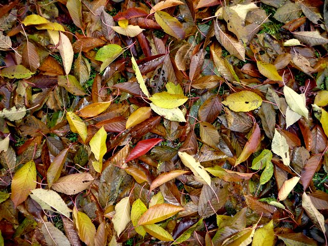 time at all. A gust of wind and the leaves fall to the ground like a shower