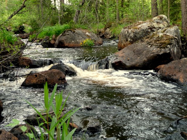 huge boulder when fishing Vinnar-ån, a small trout stream that meanders