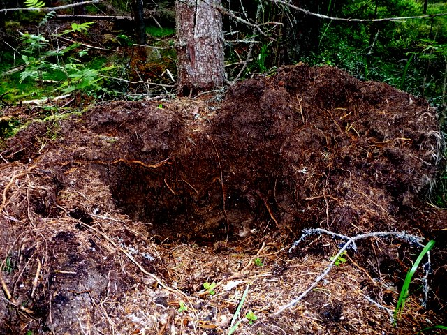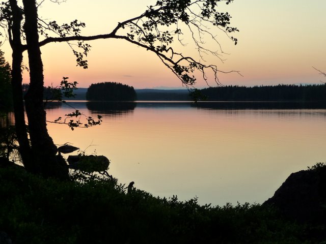 A long period of warm weather around May-June makes nature come alive. In just one week, our house stands in lush greenery, warm winds rustle the birch foliage, rabbits and deer appear from nowhere. In cover of darkness, a moose ventures out from the forest one night. Birds have taken possession of our birdhouses. An aggressive flycatcher comes out to defend his territory from the nuthatch in the next tree. A female bear with three young roams nearby. At dusk, I can hear her chastising the offspring. One of the cubs shows up in the yard one afternoon, black as a raven, woolly and cuddly. Against a background of dark pines, our house is barely visible in the middle of the picture.