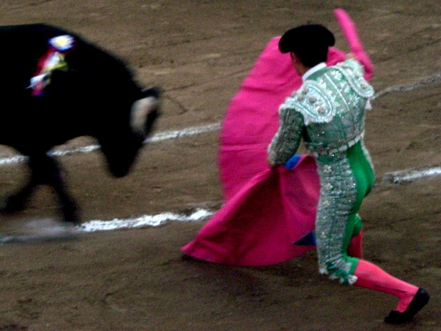 Our New Year starts with the traditional “corrida de toros” at Santa Maria, the bullfight arena in Queretaro, Mexico. Ranchers from the district, who have brought their genetically selected fighting bulls from green pastures to a walled in “toril” under the arena’s bleachers, tensely wait to see how their bulls will perform. From our barrera seats, pleasantly shadowed at four in the afternoon, we see the matador in a glimmering “traje de luces” (dress of lights) throw his “montera” across his shoulder with a gesture, which, depending on how the headwear falls, means either luck or misfortune. Suddenly the arena is empty and, at a trumpet call, the door of the toril is opened and the eyes of the spectators focus on a mighty black bull rushing out to the circle of well tended sand. One of the matador’s cuadrilleros catches the bull’s attention and handles his red-orange capote in a slow and sweeping movement when the bull, grunting with pent up energy makes a wild attack. I have always had an interest in the corrida since my summers in San Sebastian and Pamplona, where at a reasonable price I could watch great matadors like Antonio Ordoñez, Paco Camino and El Viti perform on the arena. I appreciate the music, colors, rituals, traditions, seriousness, pride and the incredible courage. Many regard bullfighting as morally unacceptable, and organizations like “Antitaurina” works hard to put a ban on it. My approach to the corrida is mainly emotional. I may feel disgust after a bad corrida, but I always experience a pleasant chill along my spine when the orchestra intonates “el Gato Montes”, a paso doble often used when a matador in the latter part of the corrida performs a magnificent “faena” bordering on magic.