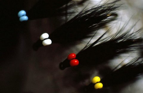 All living creatures have a relation to eyes. An eye may induce fear but, depending on situation and circumstance, may also be alluring. During one season, a group of fly-fishers made an interesting, if not very scientific test. All were given three types of streamers. One without eyes, one with painted eyes, and one with eyes made of glass beads. At the end of the season, they put together a statistic on the amount of fish caught on each type of streamer. See result below.