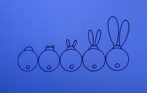 When constructing a fly I have always believed in a slight exaggeration, here illustrated by a gang of rabbits. The long ears are in drawings often made extra long since they are so typical. In short, we make a more distinct picture of the original. We immediately identify the drawing as a rabbit, not because it is true, but because it accentuates a typical characteristic. I imagine that a fish reacts in a similar way. Where a perfect imitation is just one among many, the caricature gives an immediate and positive impulse.