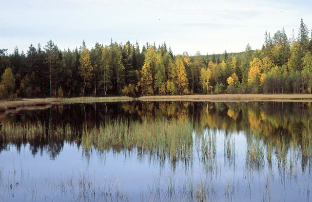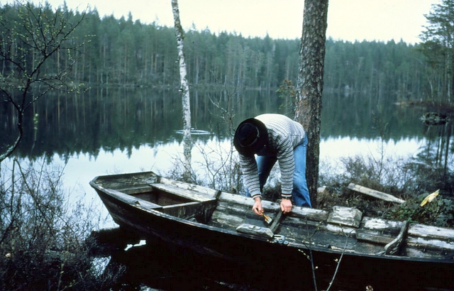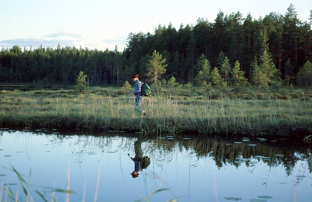 Here is one of my favorite spots. Far from main roads, a small tarn surrounded by marshland and mixed forest. This is where the first Finnish settlers once roamed the woods shoes made out of birch-bark. To survive, they set traps for grouse, built simple rafts and laid nets. Sitting with my back against a rough birch trunk more than 400 years later, I can almost feel their presence and hear their steps whispering among the lingonberry-twigs.