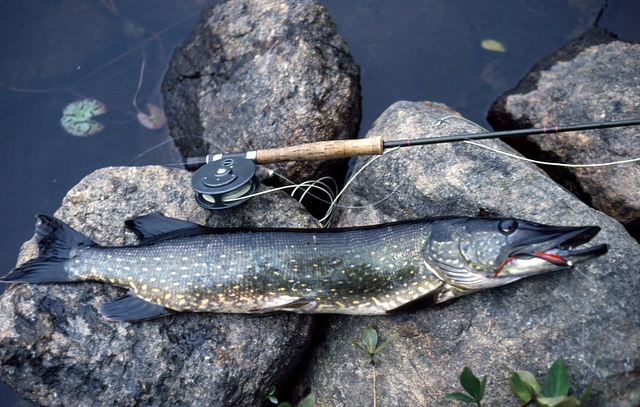 Your rod should be able to carry an 8-9 weight line and be around 8, 5-9, 5 ft. I personally like to use a 10 ft rod to add height to my cast, especially when fishing from a belly boat. Extended butt section is unimportant, but can be of use at times. The reel ? Well, everyone has his own favorite, and mine is clearly somewhat old fashioned. A better alternative is probably a reel with a wider rim. Pike seldom make long runs, so a lot of backing is not necessary.