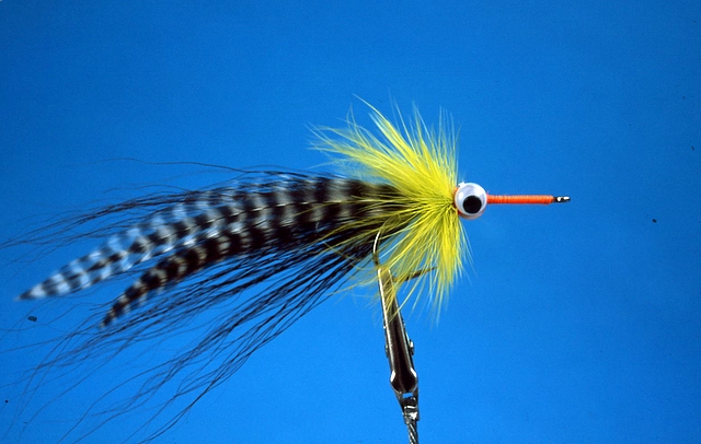 After having written an article on flies for pike fishing a few years ago, I received letters and telephone calls from concerned readers. Too heavy, was the verdict, and much too hard to cast. Somewhat stunned by the critique I sat down to design a more manageable fly. My objective as follows: Easy to cast, show a good volume in the water, not become tangled, be durable and, of course, have a shape and coloration attractive to the fish.