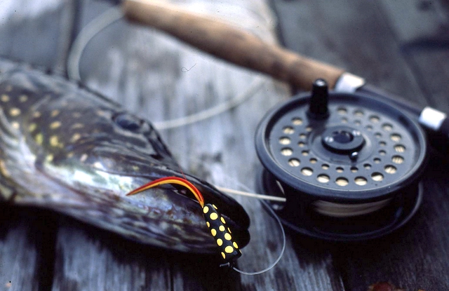 For you who would like to try your hand at fly-fishing for pike, spring is the ideal time to start. At no other time of the year will you find so many pike assembled within a limited area, nor pike so greedy and ready to grab a fly. It is all about spawning, of course, and interesting fishing spots are the shallow inlets and flooded shores. The best fishing usually occurs when the spawning is more or less over, and pike are lying in shallow water or near the outer margins of the inlet.