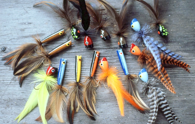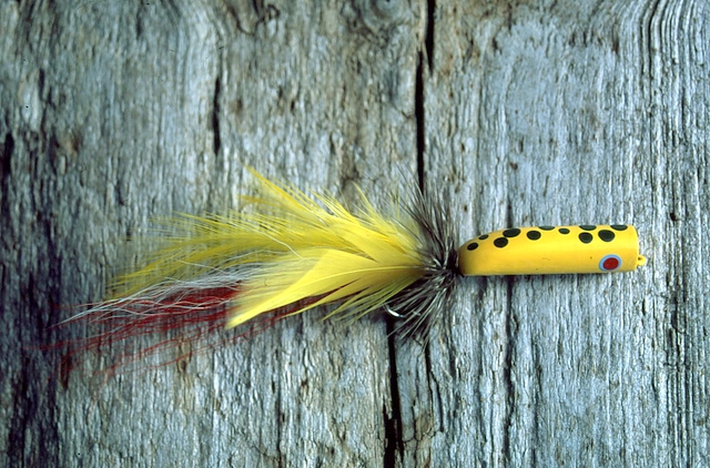 The popper is a type of fly, or lure, we have inherited from the US. The material is balsa wood, cork, deer-hair or various synthetics. It is essentially a top-water fly, and works best in shallow water or near clumps of reeds.