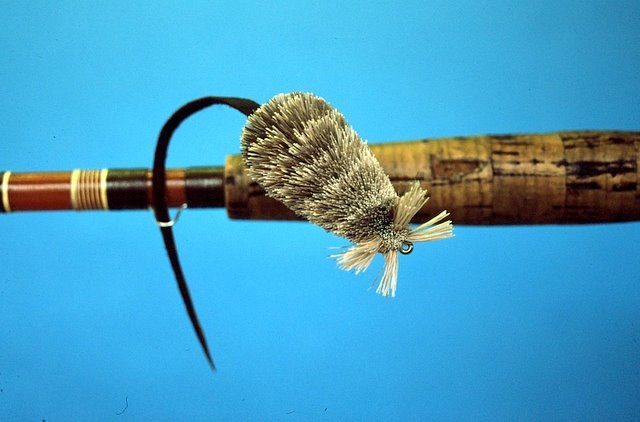 Always a good choice, the deer-hair mouse works particularly well on this tarn. I made my first one, mostly for fun, to put on a cheese-tray or to give to friends. Soon I discovered that it made excellent bait for pike. To watch the little mouse negotiate the surface in tiny “strokes” is evidently irresistible to a hungry pike. Its attack is usually explosive.