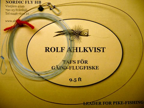 The leader is a special problem. The jaws of a pike are armed with an imposing set of teeth. The big teeth in the lower jaw penetrates the victim and presses it against the numerous small teeth of the palate. I recommend the use of a wire shock-leader in order to avoid the risk of getting it torn off. My leader is simple but functional and can be varied in length according to desire. A snap link makes changing flies easy. Price: 60 SEK