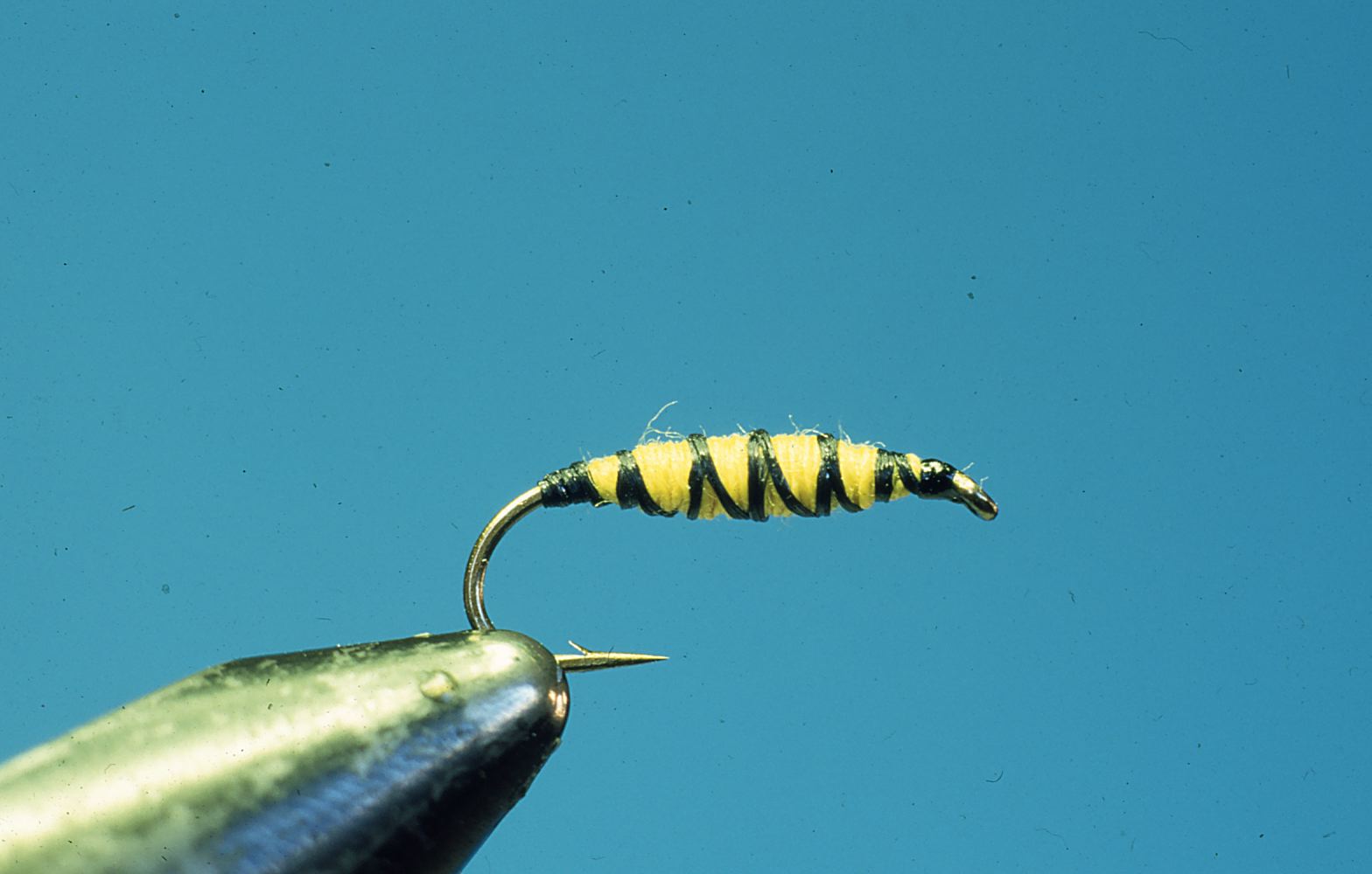 Included in the series are seven nymphs. The body material is coarse sewing thread. The ribbing thread is always black. Below are the patterns: