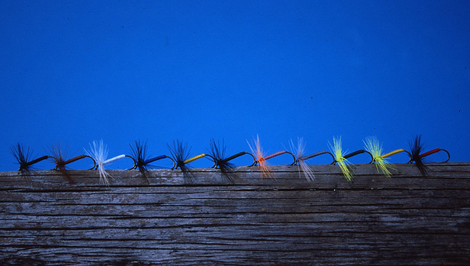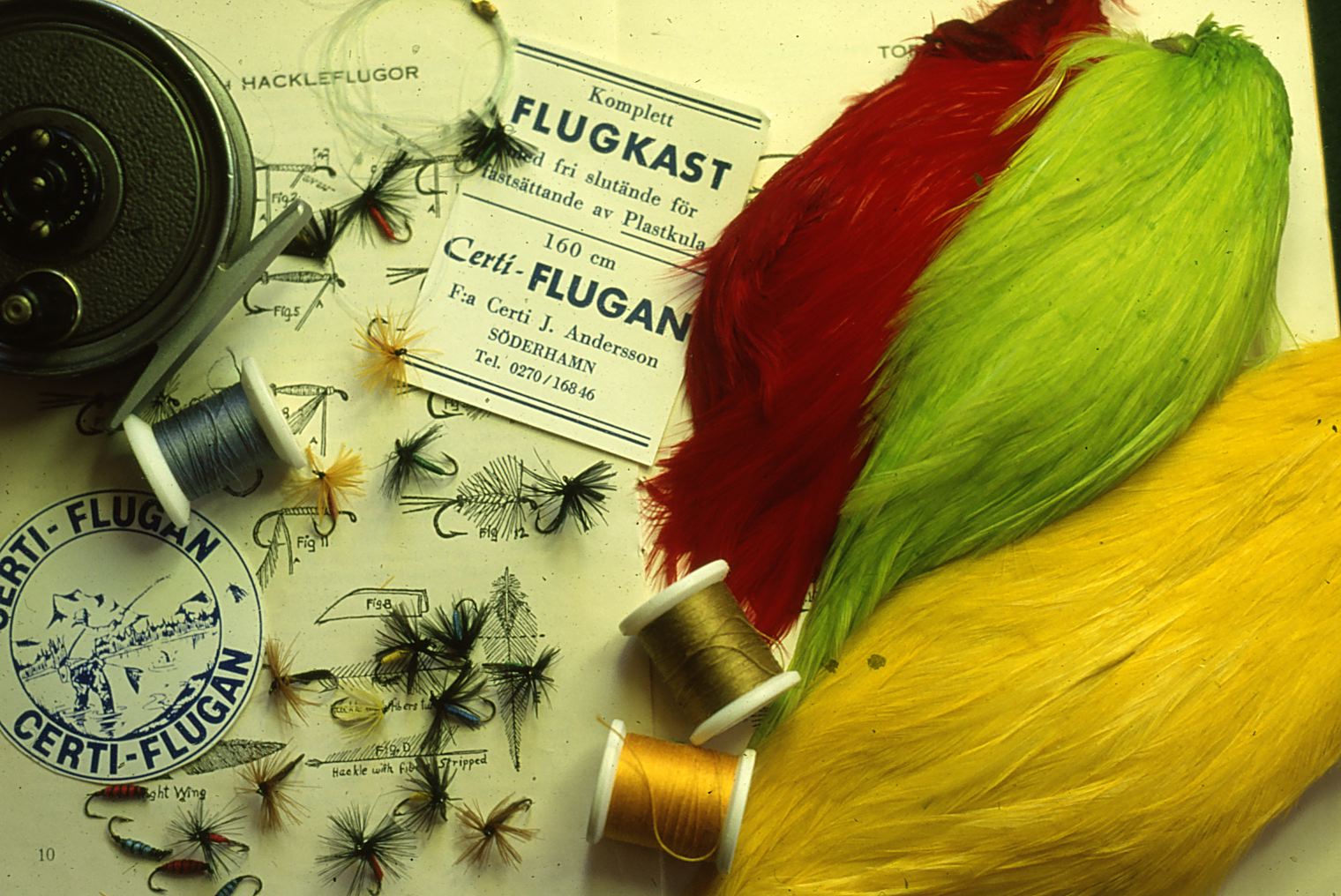In the middle of the sixties Johnny sent a choice selection of his flies to Nils Färnström for testing. It turned out very well. Färnström evidently had great success with the Certi-flies and gave them thumbs up. Like many other wet flies, they are not imitations, but color combinations that by experience give the best results. The fly body consists of coarse black sewing thread, and the hackle, which may be plucked just about anywhere on the cape, is consistently snipped off to desired length.