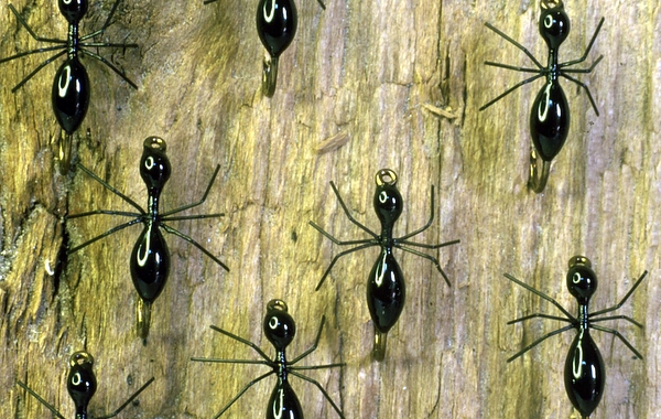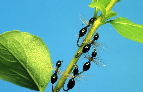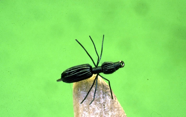 There are around sixty species of ants in Sweden. Most of these, except “stackmyran”(Formica rufa) and “stockmyran”(Camponotus herculeanus), are of slight interest to a fly fisher. “Stockmyran”, the bigger of the two, needs a number 10-8 hook. Regardless of material used, a slim and well-spaced “waist” is important. The waist makes the imitation attractive and identifies it as something worth eating.