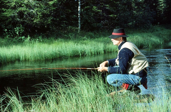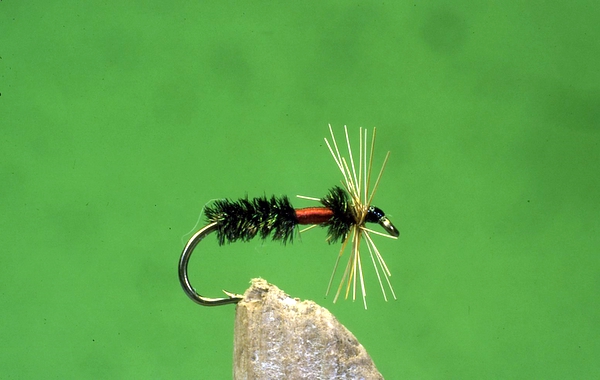 Dun-Pelles myra. Per Persson,”Dun-Pelle”, was born in 1915 at Gravbränna near Föllinge, Sweden. Fly-fishing was his passion, and in his small workshop, he and his wife Karolina produced large numbers of flies, which were sold to local anglers and visiting guests. Per Persson died in 1985 but a few of his fly patterns, like “Prästen” and “Prästfrun” are still remembered. His ant-representation is actually a tail-and wingless Royal Coachman with a cropped, stiff hackle.