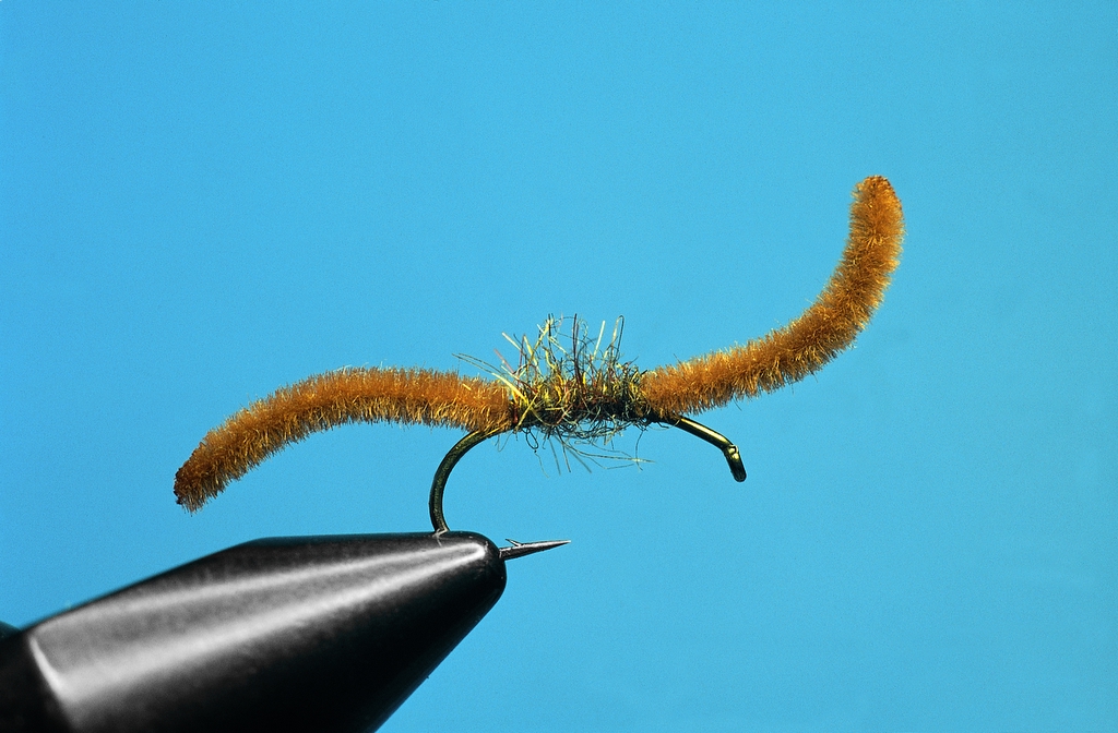 Chenille Larva. Yet another larva imitation. It is extremely easy to tie and consists of a strand of super-chenille, burnt at both ends. Dubbing conceals the tie-in point.