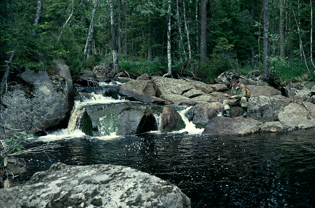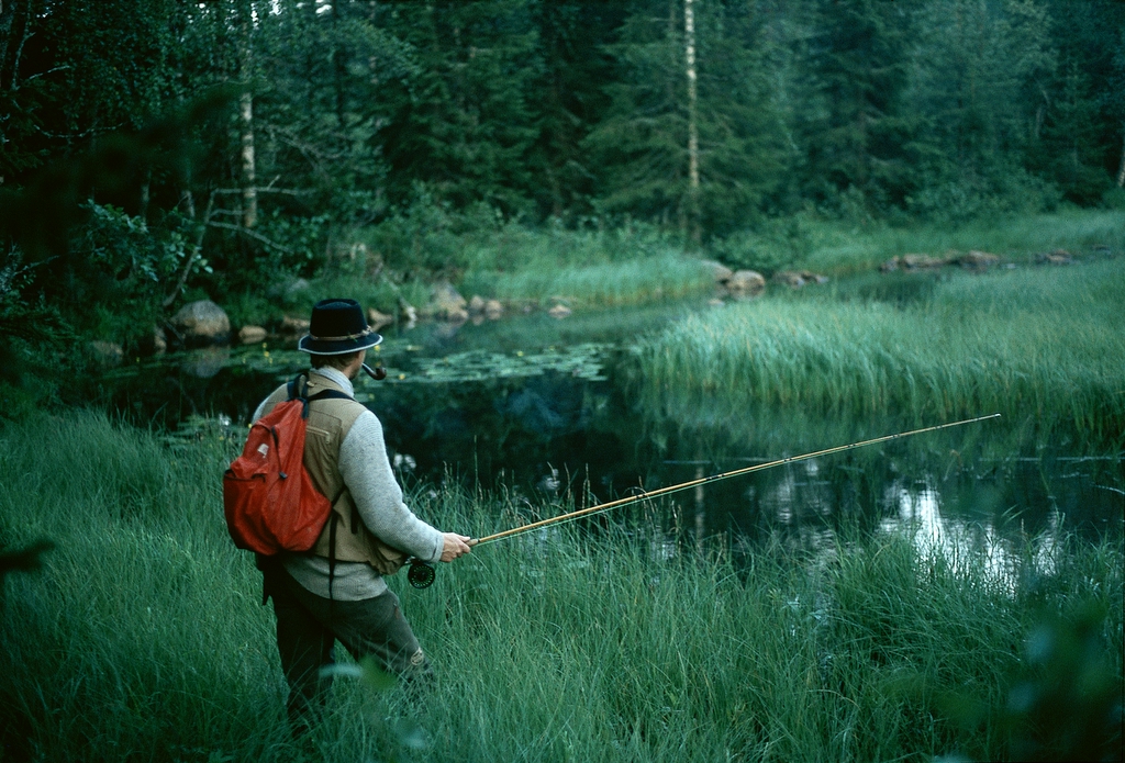 Despite heaps of new experiences, it is strange how certain memories never seem to lose their glow. To this category belong my first memories of fishing at a time when the world was new, and most paths still not tread. I am eight years old and sitting with my father on the edge of a meadow with an old grey barn in the background. My father has lit his pipe, and the fragrance of freshly cut hay mixes pleasantly with the aroma of Greve Hamilton’s Mixture. In the grass beside us lie two thin rods, one long and one short, made from slender alder wood. Line, sinker and hook are in place, and in an old tobacco tin a bunch of lively worms squirm. The creek nearby gently winds between tufts of grass and young birches. My father taps his pipe and stands up – the adventure begins.