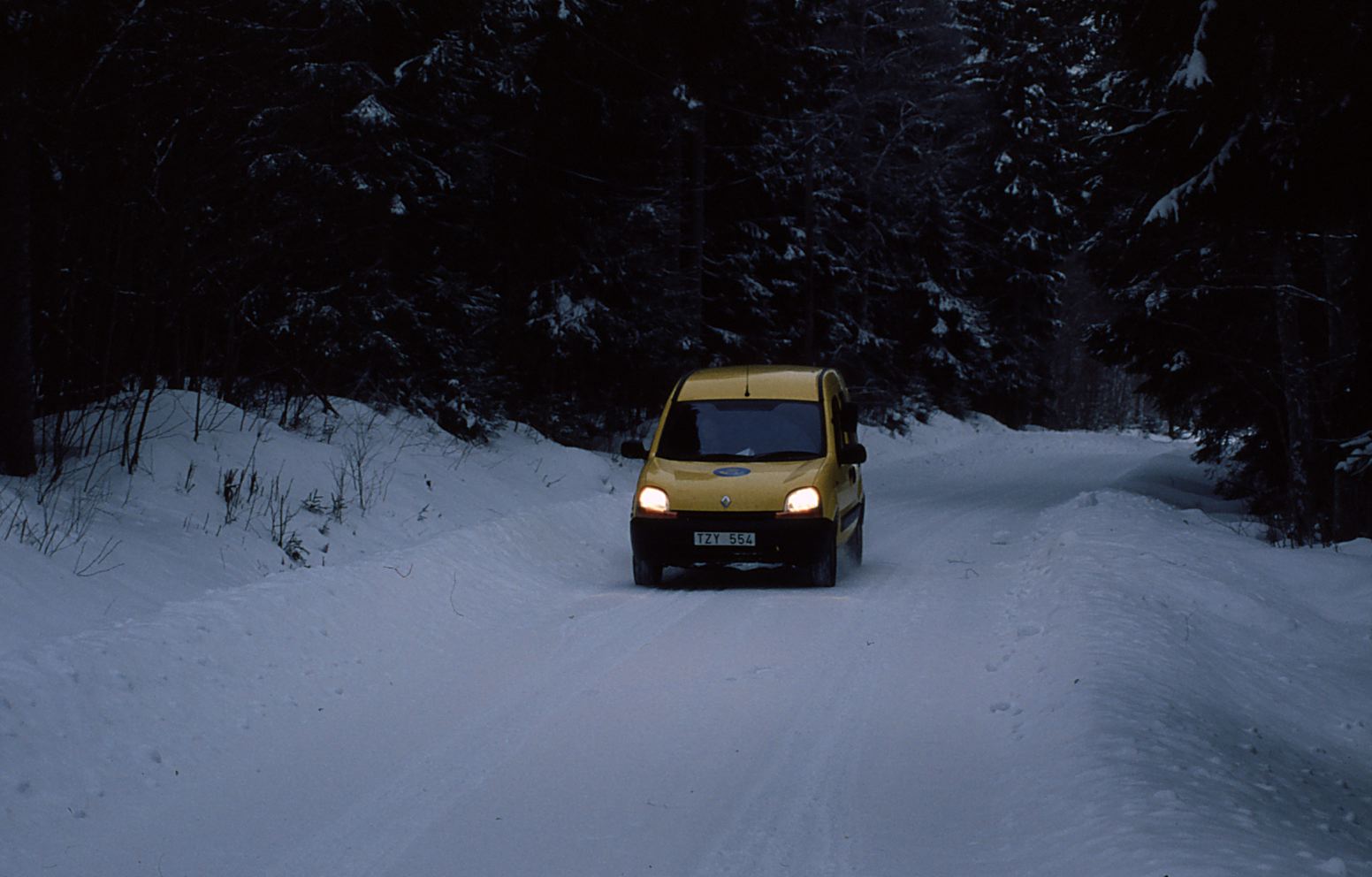 The yellow mail delivery car is a welcome sight on our roads. In roaring snowstorms, or pouring rain, it always turns up faithfully with letters, packages and postal orders. It is a well functioning service that simplifies life in thinly populated areas. Great changes have taken place in village life during the last decades. The car in the picture is a symbolic link between an epoch gone by, and the present, with its new values and another way of living. |
