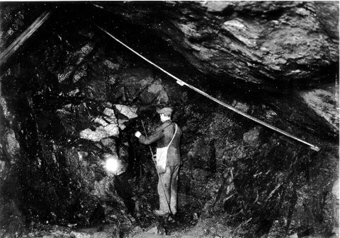 The very first extraction of ironstone was done through surface quarrying. In order to follow the iron ore, it eventually became necessary to go deeper. Working underground increased the risk of severe accidents such as cave-ins and falls from slippery ladders. As shown in the picture, protective gear was still quite primitive well into the 20th Century.