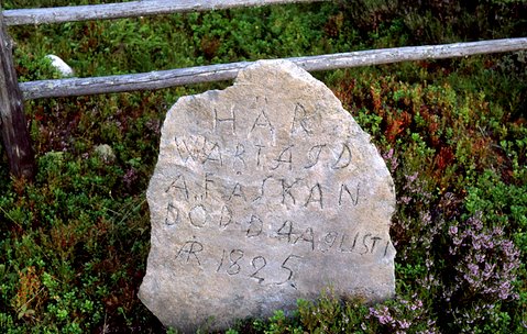 Anna Jansdotter (AJD) was born on September 3, 1810. In late summer 1825, only 15 years old, she was killed by lightning at Finnköln, where she worked as milkmaid for Erikjöns in Linghed. Who carved her date of death in stone is unknown. A fiancé, or a relative?